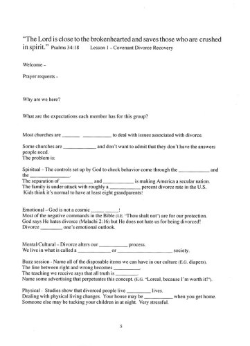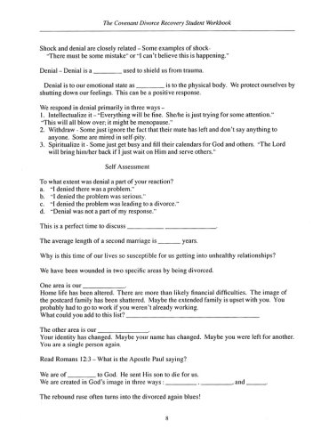 This curriculum treats divorce like a death without a funeral that forces a person to come to grips with the denial, anger, and guilt that modern divorce dishes out.