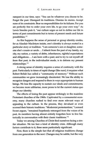 On the other hand, Churches of Christ themselves are engaging more and more in the kind of healthy theological rethinking that this book called for back in 1990. Many congregations are shedding the sectarian or exclusivist outlook, gaining new appreciation for their heritage, refocusing on the central doctrines of the faith, and entering into serious dialogue about carrying out the mission of God in this new time…Perhaps this new edition can continue to provide stimulus and guidance as the adventure continues. Toward that end, this edition contains a new chapter, "Last(ing) Things," that seeks to show the close relationship between eschatology and discipleship, between one's view of the coming kingdom of God and the cruciform life." -from Allen's Preface to the revised edition