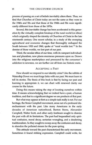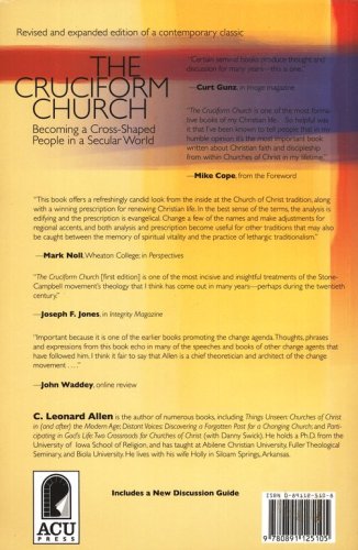 "This new edition of The Cruciform Church finds Churches of Christ at a quite different place than they were sixteen years ago when the book was first released. On the one hand, our culture is more clearly post-modern and post-Christian. All of the Christian players today are finding themselves cultural outsiders, much like the earliest Christians. We are waking up to the reality that we are in a missionary situation in our own culture, and this is forcing us (slowly, by fits and starts) to rethink our priorities and our mission.