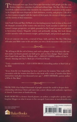 Join Frank Viola and Mary DeMuth on a fascinating journey back in time as they retell the dramatic accounts of five women who met Jesus. Each narrative is told from each woman's unique perspective, yet tightly grounded in the Gospel accounts and faithful to first-century history. Elegantly written and profoundly stirring, this book blends creative narrative with uncommon insight, spiritual depth, and practical application.