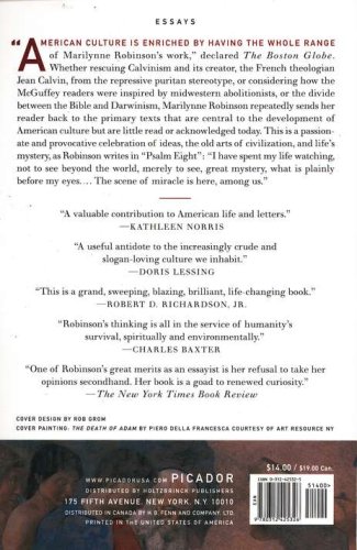 In this award-winning collection, the bestselling author of Gilead offers us other ways of thinking about history, religion, and society. Whether rescuing "Calvinism" and its creator Jean Cauvin from the repressive "puritan" stereotype, or considering how the McGuffey readers were inspired by Midwestern abolitionists, or the divide between the Bible and Darwinism, Marilynne Robinson repeatedly sends her reader back to the primary texts that are central to the development of American culture but little read or acknowledged today.