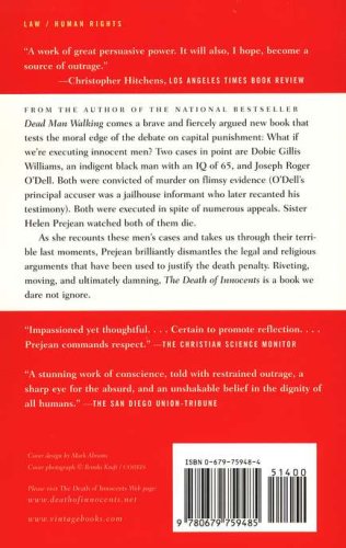 As she recounts these men's cases and takes us through their terrible last moments, Prejean brilliantly dismantles the legal and religious arguments that have been used to justify the death penalty. Riveting, moving, and ultimately damning, The Death of Innocents is a book we dare not ignore.
