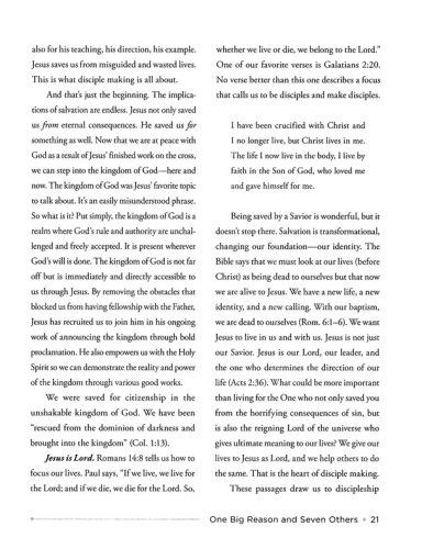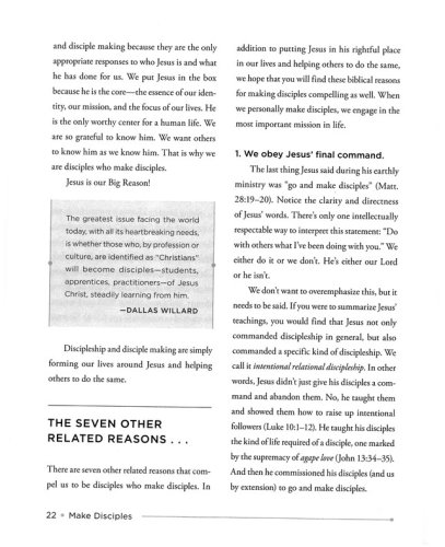 Whether you are a parent who wants to disciple your children, a small group leader who wants to disciple those in your group, or a church leader who wants to disciple future leaders, the seven key elements in this handbook form a framework for understanding discipleship that can be applied in countless situations. In addition, there are questions provided in each section to help you think through how to apply the material to your disciple making efforts.