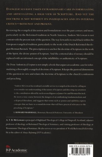 Evangelicals have taken extraordinary care in formulating and articulating a high view of Scripture. And yet the doctrine is not without its inadequacies and its internal critics–both past and present. Reviewing the evangelical discussion and formulations over the past century and more, particularly in the Reformed tradition in North America, Andrew McGowan is not content with the present state of the question. The way forward is to reach back within the European evangelical tradition, particularly to the work of the Dutch Reformed theologian Herman Bavinck. The prescription is to anchor the doctrine of Scripture in the work of the Spirit, the divine spiration of Scripture. And the contested idea of inerrancy should be replaced with an informed concept of the infallibility or authenticity of Scripture. The Divine Authenticity of Scripture is not simply a book that argues an academic case for reformulating a thoroughly evangelical doctrine of Scripture. It keeps the pastoral dimensions of the question in view and relates the doctrine of Scripture to the church's confessions and preaching.