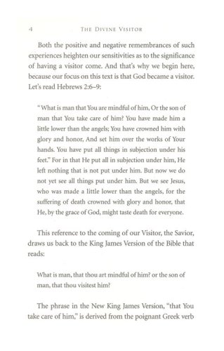 In The Divine Visitor you will find a deeper understanding of Christ by studying His incarnation, His suffering, His wounds, His blood, and His death.