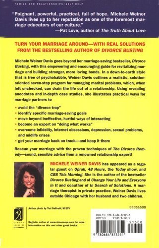 Michele Weiner-Davis goes beyond her marriage-saving bestseller, Divorce Busting, with this empowering and encouraging guide for revitalizing marriage and building stronger, more loving bonds. In a down-to-earth style that is free of psychobabble, Weiner-Davis outlines a realistic, solution-oriented seven-step program for managing marital problems, which, when left unchecked, can drain the life out of a relationship. Using revealing anecdotes and in-depth case studies, she illustrates practical ways for marriage partners to