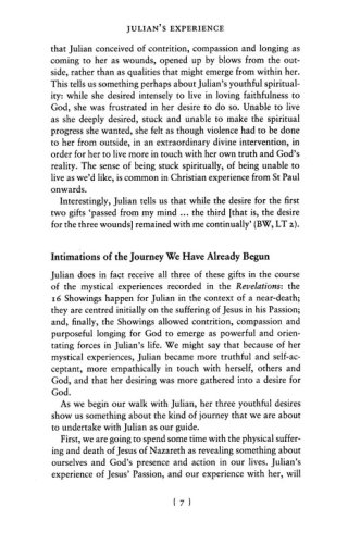 Julian of Norwich is an ideal companion for personal spiritual growth because her mystical experiences led her to a kind of faith that makes sense to 21st century Christians â€" a God of unconditional love, of merciful compassion and honesty, and radical belief in the goodness of creation and humanity. Her example provides a map for a faith journey from initial trust, through critical questions and struggle, to resolution â€" a pattern many experience today.