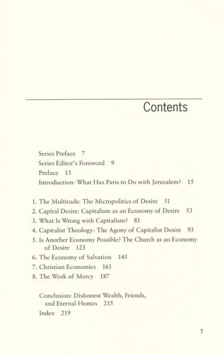 Bell approaches capitalism and Christianity as alternative visions of humanity, God, and the good life. Considering faith and economics in terms of how desire is shaped, he casts the conflict as one between different disciplines of desire. He engages the work of two important postmodern philosophers, Deleuze and Foucault, to illuminate the nature of the postmodern world that the church currently inhabits. Bell then considers how the global economy deforms desire in a manner that distorts human relations with God and one another. In contrast, he presents Christianity and the tradition of the works of mercy as a way beyond capitalism and socialism, beyond philanthropy and welfare. Christianity heals desire, renewing human relations and enabling communion with God.