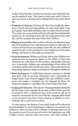 The Educated Child defines a good education and offers parents a plan of action for ensuring that their children achieve it. Combining the goals that William Bennett enumerated as Secretary of Education, key excerpts from E. D. Hirsch's Core Knowledge Sequence, and the latest research, it sets forth clear curricula and specific objectives for children from kindergarten through the eighth grade, including: