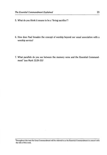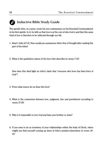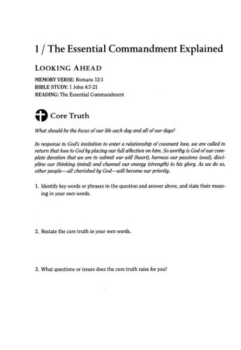 a core truth a memory verse an inductive Bible study a reading on one aspect of the Great Commandment