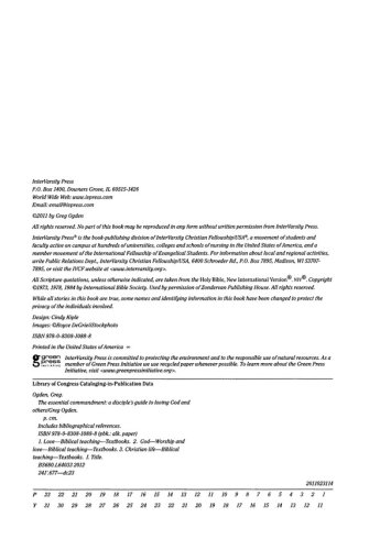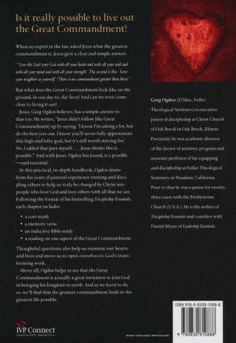 Thoughtful questions will also help you examine your heart and life and move you to open yourself to God's transforming work. Above all, Ogden helps you see that the Great Commandment is actually a great invitation to join God in bringing his kingdom to earth. And as you learn to do so, you'll find that the greatest commandment leads to the greatest life possible.