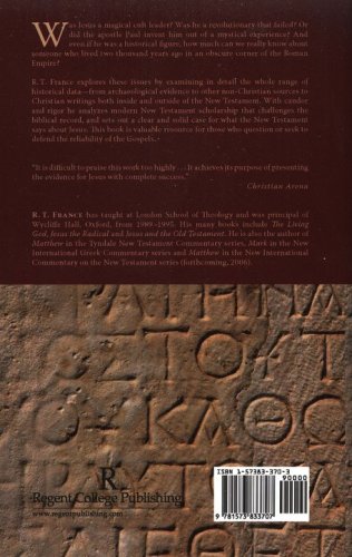 Was Jesus a magical cult leader? Was he a revolutionary that failed? Or did the apostle Paul invent him out of a mystical experience? And even if he was a historical figure, how much can we really know about someone who lived two thousand years ago in an obscure corner of the Roman Empire? R. T. France explores these issues by examining in detail the whole range of historical data-from archaeological evidence to other non-Christian sources to Christian writings both inside and outside of the New Testament. With candor and rigor he analyzes modern New Testament scholarship that challenges the biblical record, and sets out a clear and solid case for what the New Testament says about Jesus. This book is valuable resource for those who question or seek to defend the reliability of the Gospels. "It is difficult to praise this work too highly . . . It achieves its purpose of presenting the evidence for Jesus with complete success." Christian Arena R. T. FRANCE has taught at London Bible College and was principal of Wycliffe Hall, Oxford, from 1989-1995. His many books include The Living God, Jesus the Radical and Jesus and the Old Testament. He is also the author of Matthew in the Tyndale New Testament Commentary series.