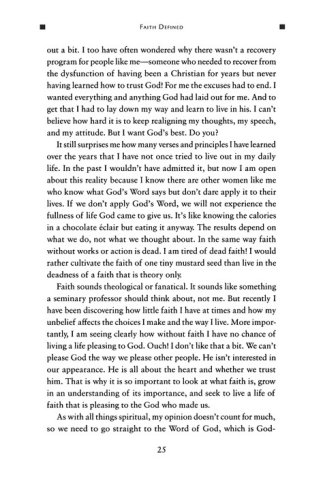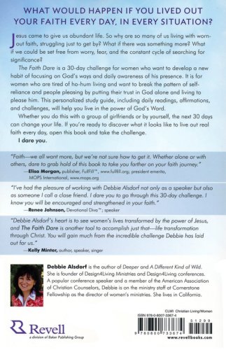 The Faith Dare is a 30-day challenge for women who are tired of ho-hum living and want to break the pattern of self-reliance and people pleasing by putting their trust in God alone and learning to live to please him. This energizing book will change a woman's focus from her moods and attitudes to living in the power of God's Word. It will encourage her to take the next step and begin to live out real faith in her real life.