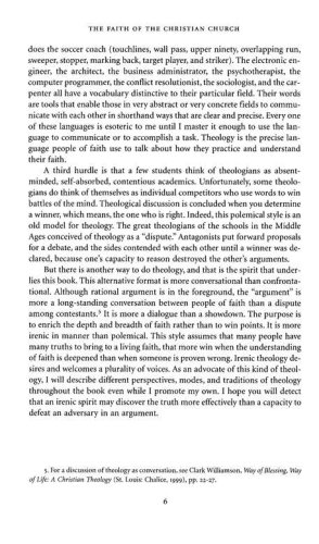 Inbody does not hide his own stance on issues but presents a full range of interpretations and openly points readers to other possibilities they can pursue. The Faith of the Christian Church offers just enough questions to provoke reflection and just enough answers to encourage readers to form their own grasp on the Christian faith.