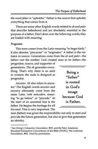 The inherent purpose of all men is fatherhood. Whether a man is married or single, and whether or not he has children, he is designed by God to fulfill the role of father in the lives of those around him. It is his calling to reflect the creative and cultivating nature of God.