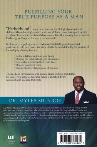 This book provides key principles and insights that will teach you how to be a father in your personal sphere of influence. In clear and compelling terms, Dr. Munroe explains how a man can become source, nourisher, sustainer, protector, teacher, discipler, leader, head, caring one, and developer. The Fatherhood Principle provides practical guidelines for fulfilling your God-given fatherhood role by showing you… How to be the foundation of your familyHow to be strong even in the storms of lifeHow to meet the needs of womenHow to develop the potential and gifts of childrenHow to find your life’s visionFive vital purposes of the male Discover God’s original blueprint for men and step into your true purpose in life.