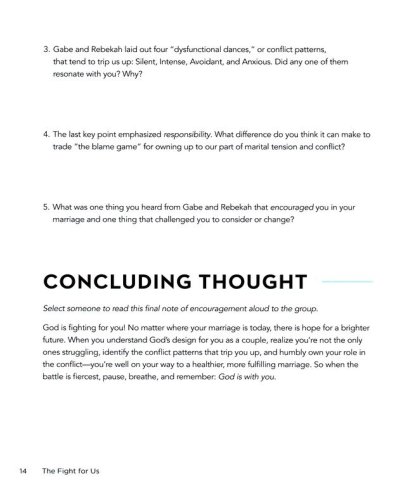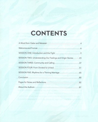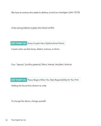 Discover why you fight, how you fight, and how to overcome toxic patterns to fight wellRenew your commitment to love, care for, and show grace to your spouseRelinquish coping mechanisms and/or addictions that have come between youUnderstand your spouse's needs while still validating your ownEstablish goals and rhythms that will deepen your friendship and intimacy as a coupleAnd, most of all, lean on the One who fights for you and your marriage