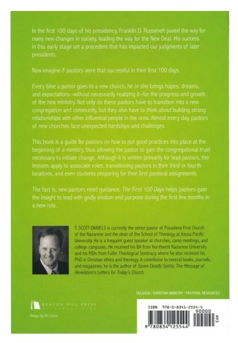 Every time a pastor goes to a new church, they form hopes, dreams, and expectations – without necessarily realizing it – for the progress and growth of their new ministry. Not only do these pastors have to transition into a new congregation and community, but they also have to think about building strong relationships with other influential people in the area. Almost every day, pastors of new churches face unexpected hardships and challenges. Some of the issues are financial mismanagement from their predecessor, moral or ethical misbehavior, or unresolved conflict that has just been suppressed long enough to find a new pastor. The fact is, pastors of new churches need guidance. The First 100 Days is for these pastors who need some guidance and insight to help them lead with godly wisdom and purpose during the first few months.