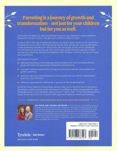 Extended teaching on the theology and principles from The Flourishing Family along with ideas back by neuroscienceHelps parents examine popular parenting methods such as gentle parenting through a Gospel lensPractical exercises and invitations to infuse peace into your family relationships, practices, and behaviorsDiscussion questions for reflection or for fostering community of like-minded parentsIntroductory video available for streamingIn the midst of the chaos inherent to parenting, Jesus invites us to be anchored to His peace. He remains undisturbed by spills and messes, unruffled by sibling disagreements, and non-anxious about our internal struggles. In The Flourishing Family Study Guide, discover how to parent with grace and patience, peace and purpose.