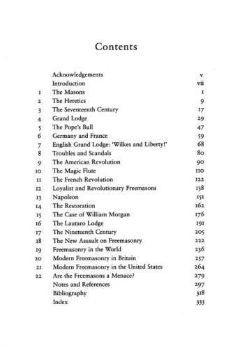 The MasonsHereticsGrand LodgeThe Pope’s BullGermany and FranceEnglish Grand LodgeTroubles and ScandalsThe American RevolutionThe French RevolutionModern Freemasonry in BritainModern Freemasonry in the United StatesAre the Freemasons a MenaceAnd much more!