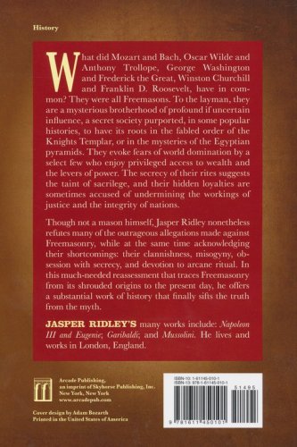 Though not a mason himself, Jasper Ridley nonetheless refutes many of the outrageous allegations made against Freemasonry, while at the same time acknowledging the masons’ shortcomings: their clannishness, misogyny, obsession with secrecy, and devotion to arcane ritual. In this much-needed reassessment, he offers a substantial work of history that sifts the truth from the myth as it traces Freemasonry from its origins to the present day.