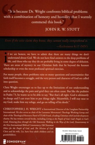 If we are honest, we have to admit that there are many things we don’t understand about God. We do not have final answers to the deep problems of life, and those who say they do are probably living in some degree of delusion. There are areas of mystery in our Christian faith that lie beyond the keenest scholarship or even the most profound spiritual exercises. For many people, these problems raise so many questions and uncertainties that faith itself becomes a struggle, and the very person and character of God are called into question. Chris Wright encourages us to face up to the limitations of our understanding and to acknowledge the pain and grief they can often cause. But at the same time, he wants us to be able to say, like the psalmist in Psalm 73: "But that’s all right. God is ultimately in charge and I can trust him to put things right. Meanwhile, I will stay near to my God, make him my refuge, and go on telling of his deeds."