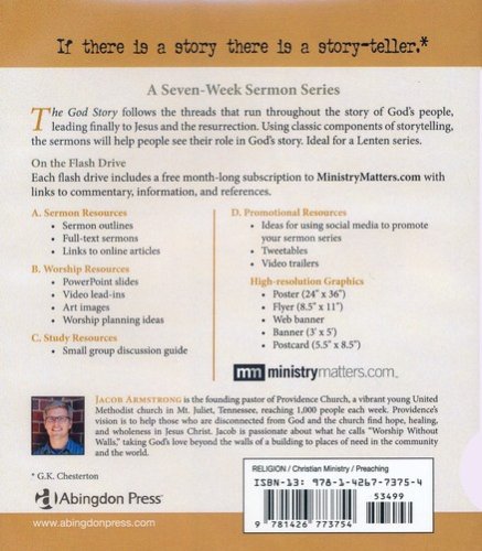 This product is one USB flash drive with a multitude of resources:Seven sermons in outline form and complete text"How to Use" section – advice from Jacob and his team on how to accomplish your goals with The God Story sermon seriesA month-long subscription to MinistryMatters.com with links to helpful commentary information and referencesIdeas for worship, prayer, and service activities Small group leader guide for small groups reading The God Story Daily Readings together Tweetables – four excerpts ready for tweeting for each week Promotional art (poster, web banner, art for print banner, cover images, bulletin cover, postcards) Promotional trailer video and seven trailer versions to lead into each week's sermon PowerPoint templates