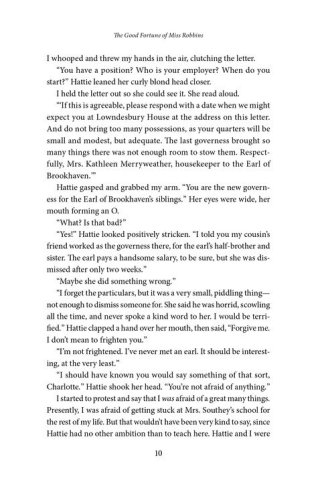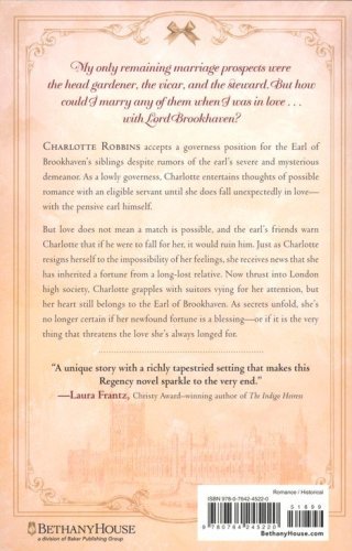 Charlotte Robbins accepts a governess position for the Earl of Brookhaven's siblings despite rumors of the earl's severe and mysterious demeanor. As a lowly governess, Charlotte entertains thoughts of possible romance with an eligible servant until she does fall unexpectedly in love–with the pensive earl himself.