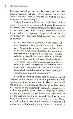 In this exclusive English edition of the elucidating and award-winning investigation of Archimedes' life, Mario Geymonat provides fresh insights into one of the greatest minds in the history of humankind. Archimedes (ca 287 BCE-ca 212 BCE) was a mathematician, physicist, scientist, and engineer. Born in Syracuse, Sicily, the Greek Archimedes was an inventor par excellence. He not only explored the displacement of water and sand, worked out the principle of levers, developed an approximation of pi, discovered ways to determine the areas and volumes of solids, and invented the monumental Archimedes' screw (a machine for raising water), Archimedes also developed machinery that his fellow Syracusans successfully employed to defend their native city against the Romans. The Great Archimedes is already a highly acclaimed telling of the life and mind of one of antiquity's most important and innovative thinkers, and, now in translation, it is sure to be cherished by experts and novices alike across the English-speaking world. This wonderfully illustrated and multifarious book is enriched by numerous quotations and testimonies from ancient sources.