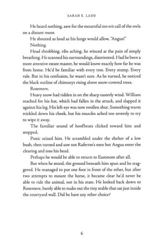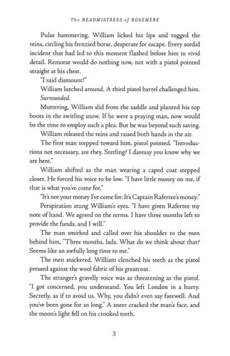 William Sterling dallied his way into financial trouble and mortal danger. When he is assaulted by his creditors’ henchmen on the road home from a tavern, he guides his horse to the doorstep of his tenant, the Rosemere School for Young Ladies. After being tended to by Patience, the wounded William rides off into the dawn—but makes a point to learn more about the lovely headmistress.