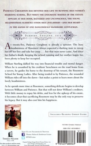 At twenty-five, Patience Creighton is already a spinster. The busy headmistress of Rosemere always expected a dashing man to sweep her off her feet and take her away . . . but that man never came. And since her father’s death, keeping the school running and her mother happy has been plenty to keep her occupied.