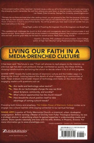 Doing Church in a Media-Drenched Culture It has been said, "the future is now." From cell phones to mp3 players to the Internet, no previous age has seen such profound change manifested so quickly. But these thrilling, dizzying transformations are forcing the church to decide where it fits in all this progress. Shane Hipps presents the promise and peril of the emerging culture and its relationship to the emerging church. Looking beyond the details of what’s happening in communities of faith, Hipps analyzes the broader impact of technology and media on the church while engaging readers with questions such as: • Is media/technology value-neutral? • How has technology changed the way we think about Scripture, community, and worship? • What cultural opportunities has the church missed? • How should the church position itself to take advantage of coming cultural trends? Providing both history and prophecy, The Hidden Power of Electronic Culture invites us to engage new cultural realities while staying connected to our spiritual heritage.