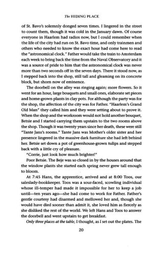 In World War II she and her family risked their lives to help Jews and underground workers escape from the Nazis. In 1944 their lives were forever altered when they were betrayed, arrested, and thrown into the infamous Nazi death camps. Only Corrie among her family survived.