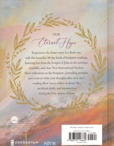 Experience the Easter story in a fresh way with The Hope of Easter – a beautiful 40-day book of Scripture readings, featuring text from the Gospel of John in the accurate, readable, and clear New International Version. Short reflections on the Scripture, journaling prompts, and room to write your thoughts after each day’s reading allow you to reflect on Jesus’ life, sacrificial death, and resurrection during the holy season of Lent.