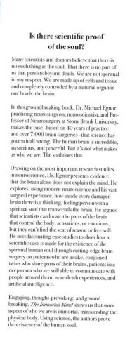 Engaging, thought-provoking, and groundbreaking, The Immortal Mind shows here that some aspect of who we are is spiritual and immortal, transcending the physical body.