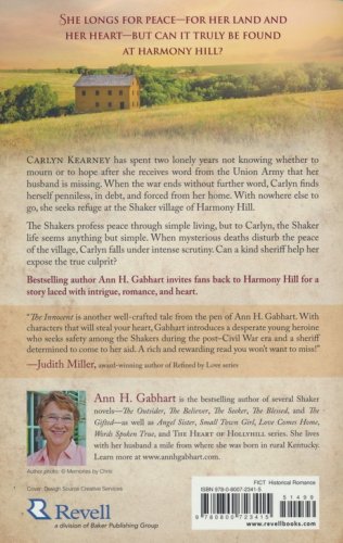 Carlyn Kearney has spent two lonely years not knowing whether to mourn or to hope after she receives word from the Union Army that her husband is missing. The war ends without further word. Now penniless, in debt, and forced from her home, Carlyn seeks refuge at the Shaker village of Harmony Hill, only to discover that they will not allow her to keep her beloved dog, an animal that has been her faithful companion since her husband went off to war. Sheriff Mitchell Brodie has pity on the lovely young woman and agrees to take the dog. Carlyn is just settling into life as a sister in the Shaker village when she receives a devastating letter confirming her worst fears. As she wrestles with whether to commit herself fully to the Shaker life, mysterious deaths begin to occur, and Carlyn comes under suspicion. Can Sheriff Mitchell help her expose the true culprit?