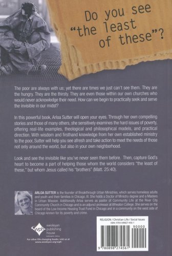 In this powerful book, Arloa Sutter will give you vision. Through her own compelling stories and those of many others, she sensitively examines the hard issues of poverty through real-life examples, theological and philosophical models, and practical direction. With wisdom and first-hand knowledge from her own established ministry to the poor, Sutter will open your eyes to what is happening around your very own neighborhood.