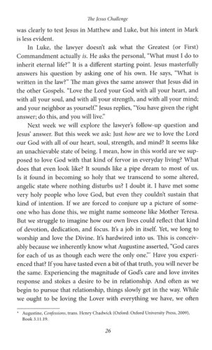 The antidote to distraction is focused love. The Jesus Challenge: 21 Days of Loving God and Neighbor is a 3-week journey to help you become more attentive to your relationship with God. This book invites you to move from forgetfulness to remembering, from distraction to intentionality, and from self-sufficiency to God-reliance, so that you can live lives that center on loving God and loving others as ourselves.