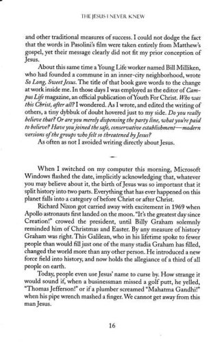 Philip Yancey cuts through existing views and preconceptions of Jesus–citing opinions from church history, modern history, and popular culture; discussing how different people and cultures view Jesus; dissecting popular quotes about Jesus; and much more–and he offers a more accurate perspective by pointing us back to the Bible.