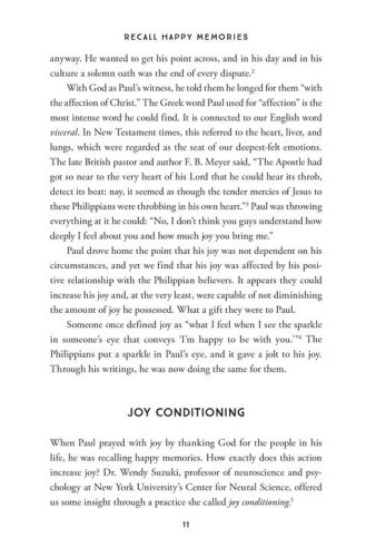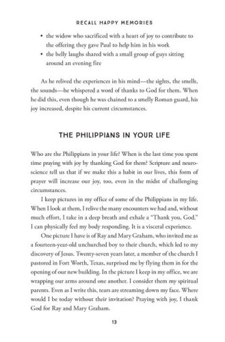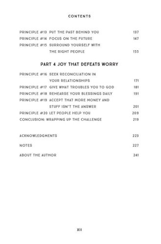 discover the vital link between increasing your joy and winning the battle against worry and anxiety;develop patterns and mindsets of gratefulness and forgiveness that clear obstacles to happiness; andaccess the kind of circumstance-defying contentment that opens the door to a truly fulfilled life–even when there’s a gap between the life you have now and the life you hope for.