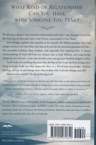 For most of us, fear is something we try to avoid. And fearing God hardly sounds like an occasion for joy. But Jerry Bridges shows how the fear of the Lord is actually the key that opens the door to a life of true knowledge, wisdom, blessing, and joy.