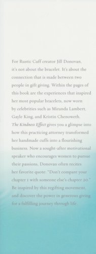 For Rustic Cuff creator Jill Donovan, it's not about the bracelet. It's about the connection that is made between two people in gift giving. Within the pages of this book are the experiences that inspired her most popular bracelets, now worn by celebrities such as Miranda Lambert, Gayle King, and Kristin Chenowith. The Kindness Effect gives you a glimpse into how this practicing attorney transformed her handmade cuffs into a flourishing business. Now a sought-after motivational speaker who encourages women to pursue their passions, Donovan often recites her favorite quote: "Don't compare your chapter 1 with someone else's chapter 20." Be inspired by this regifting movement, and discover the power in generous giving for a fulfilling journey through life.