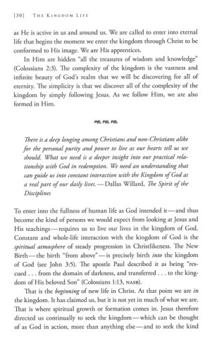 For six years, spiritual formation leaders such as Dallas Willard, Bruce Demarest, and Bill Hull came together with other colleagues to create a collection of wisdom and honest personal revelation in the areas of discipleship and spiritual formation. The result is The Kingdom Life, a book that offers a fresh approach to the spiritual disciplines through a three-pronged focus on transformation, community, and outreach. Connect in a unique way with God and His kingdom by understanding how He sees grace and doctrine, brokenness and obedience, outreach and justice.