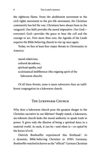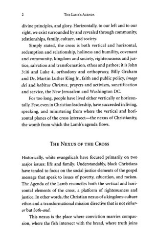 Joining the Christianityof Martin Luther King Jr. and Billy Graham, The Lamb’s Agenda reveals the crucial connection between biblical socialjustice and spiritual righteousness. Gettingback to the basics of Christianity means extending our efforts simultaneouslyin the vertical direction of God and the horizontal direction of our neighbors.