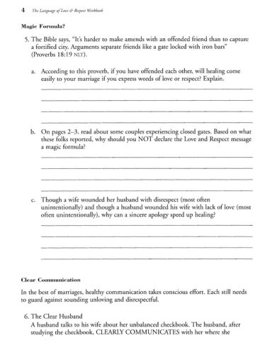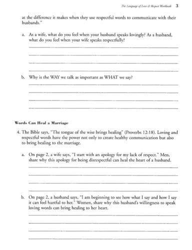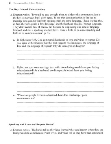 An in depth study of the vital principles from The Language of Love and Respect now in workbook form.