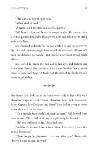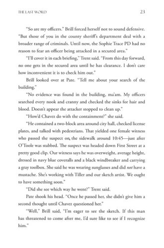 But that's not all Brill's got on her plate. One of her detectives has been killed, and the attacker has threatened to come for her next. When a second cop is wounded, public criticism mounts as Brill attempts to stay alive long enough to catch the perp. And she's trying to find that deadbeat dad as Vanessa struggles to make decisions about her future. The killer seems to be everywhere and nowhere. How can a police chief and a mother do her job with her life on the line? In a show of grace under pressure, Brill will manage to have the last word, even if it kills her.