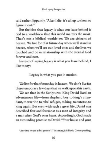 Through 90 powerful readings, The Legacy Life Devotional challenges and equips you to live a countercultural, biblical life that matters for generations to come. Building off the concepts in The Legacy Life, founder and CEO of Hobby Lobby David Green shares daily devotional thoughts about how to