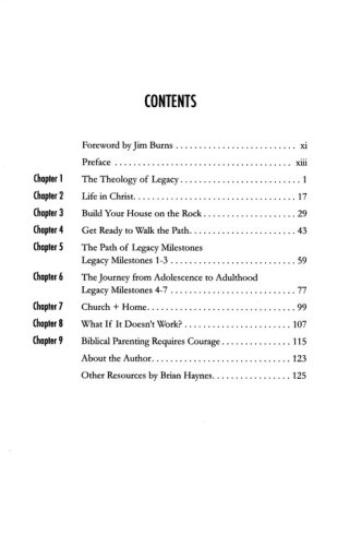 Brian Haynes writes as a minister as well as a father on this journey. He gives parents great insight into biblical principles necessary for proper parenting. The seven Legacy Milestones created by Brian Haynes are explained with practical application. He also shares discussion questions at the end of each chapter than can be used with your spouse or in a small group setting.