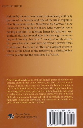 Written for professors and advanced graduate students in New Testament studies, The Letter to the Hebrews: A New Commentary exegetes the entire letter verse by verse, paying attention to relevant issues for theology and spiritual life. Most remarkably, it explains why this letter is really a homily written by a preacher who must have delivered it several times in different places, and it offers an eloquent interpretation of the Letter to the Hebrews as a Christological hymn celebrating the priesthood of Christ.