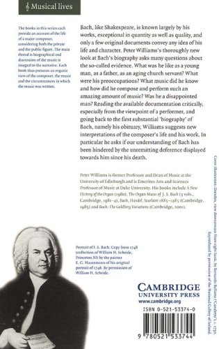 Like Shakespeare, J.S. Bach is known largely by his works. Peter Williams asks many questions in this examination of the man as well as the composer. What was Bach like as a youth, father, and, eventually, church elder? What music did he know and how did he compose and perform such an amazing amount? Ultimately, Williams questions the effects of unremitting acclaim on objective evaluations of J.S. Bach.